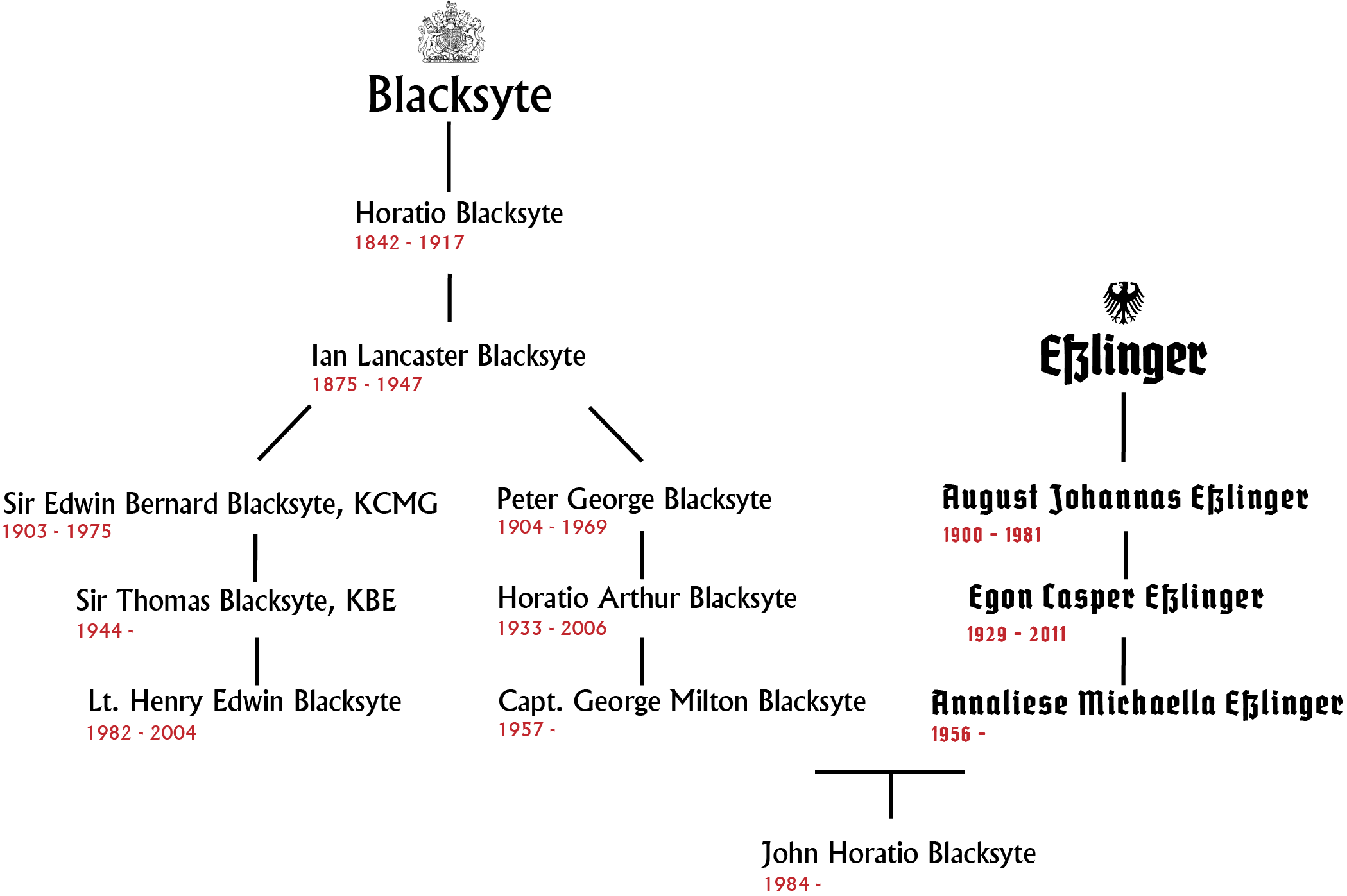 The legacy of the Blacksyte family, and indeed their German counter parts - the Eßlingers, goes back over centuries. But it is at the crossroads of the 1860s that the seeds of intrigue and adventure took root. In that long and winding 150 year evolution, the world changing at a pace never before seen, their stories grew incredibly rich; yet none more so than three individuals of this unique heritage. These three men, around which great achievements and great deviations in the family’s history were made, form the very core of this archive. Three fixed points along a journey through some of histories greatest turning points; creating silent and indelible ripples through the shadows of time.